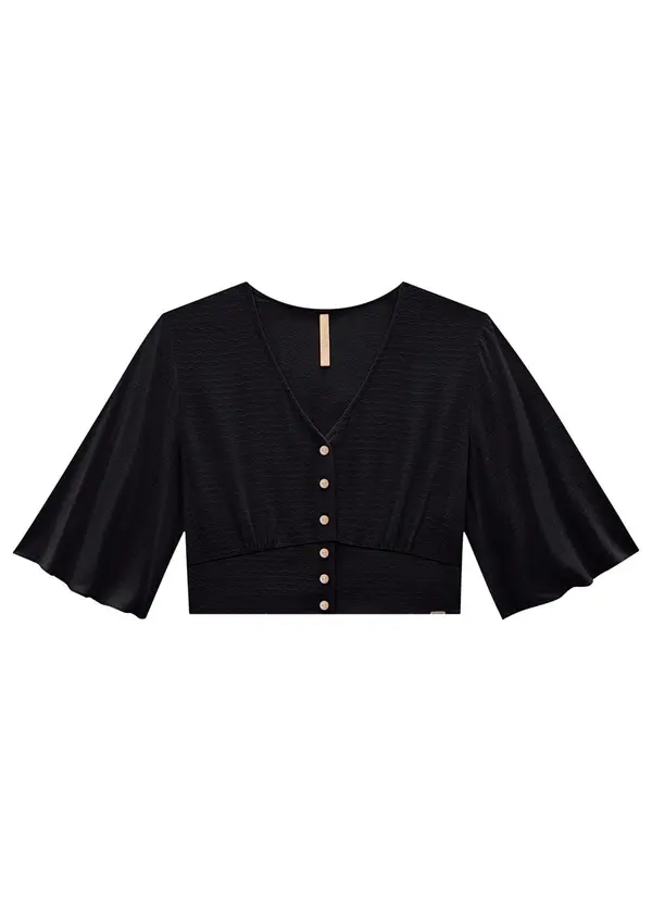 Lunender - Blusa Cropped em Viscose com Manga Curta Rosa