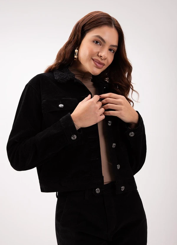 Lunender - Jaqueta em Sarja Cotelê com Botões Preto