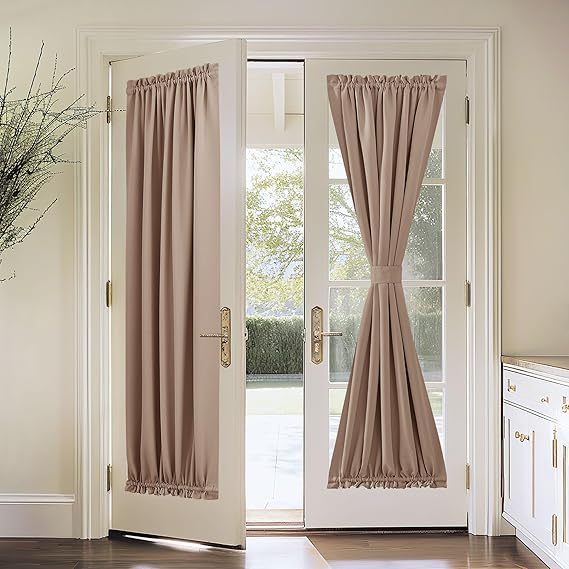 Cortina Francesa para Porta de Vidro 1 Unidade Tecido 100% Blackout Avelã com Abraçadeira de Velcro