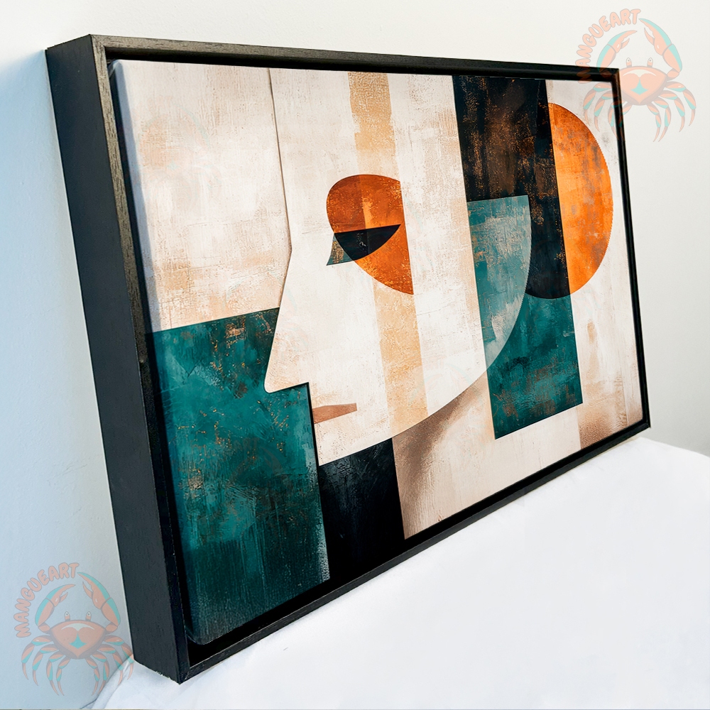 Quadro decorativo Rosto Geométrico Abstrato tela acetinada opçoes de moldura decoração moderna.