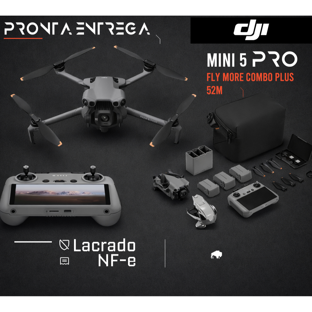 Drone Dji Mini 5 Pro Fly More Combo Plus 52min 3 Baterias, controle com tela, bolsa, filtro ND
