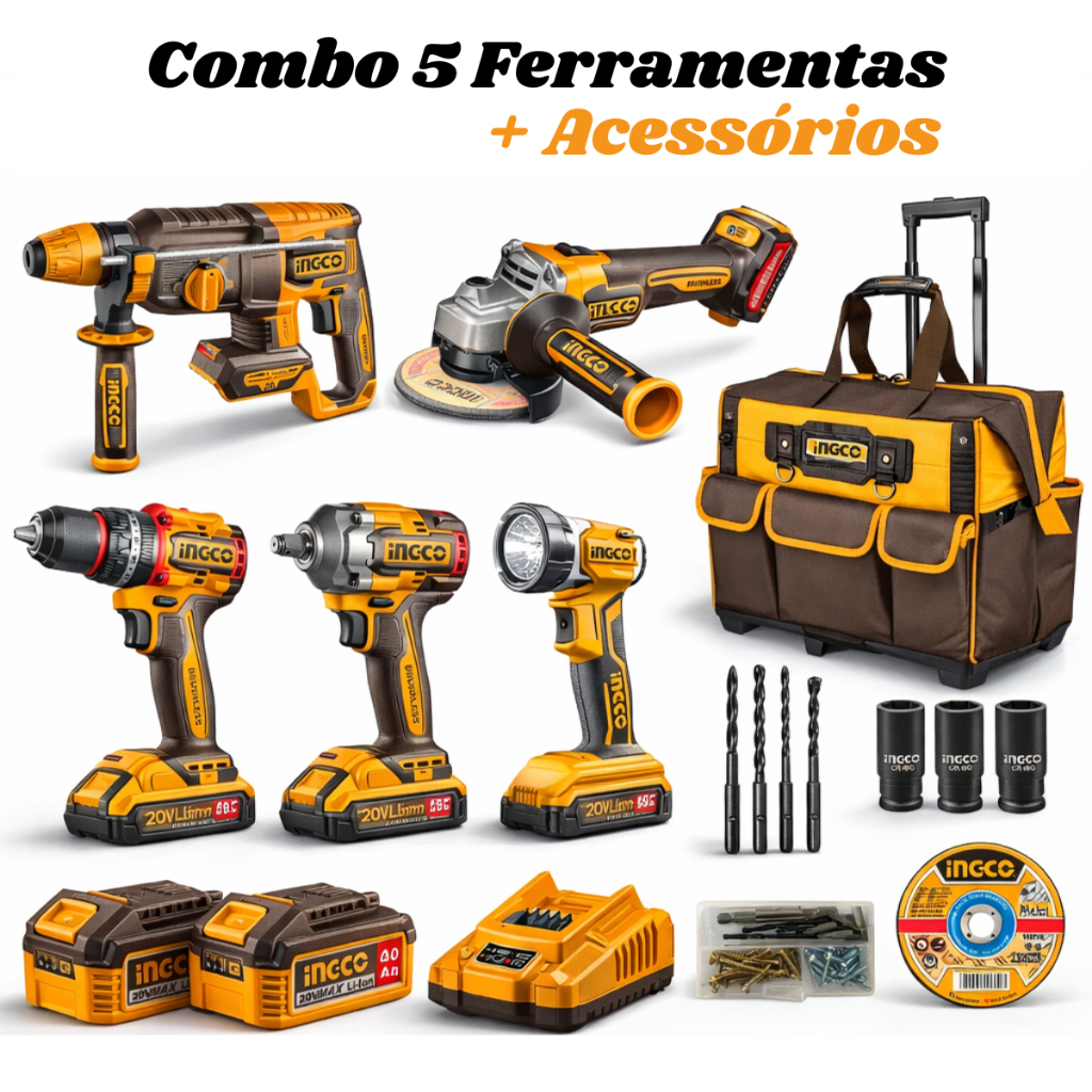 Kit Combo 3 em 1 48V Parafusadeira Esmerilhadeira Chave Impacto 2 Bat. Brushless 4Ah Luatek LWJ-299