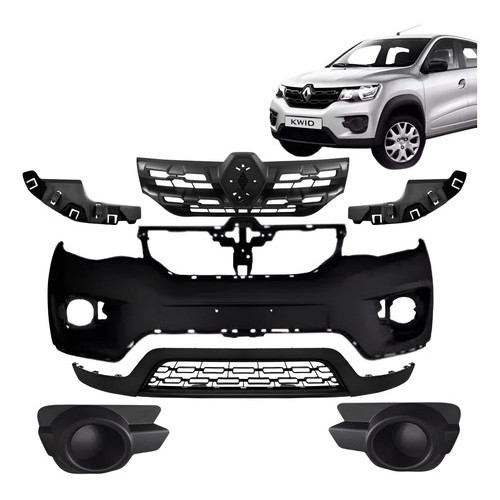 Kit Completo Parachoque Dianteiro E Grades Kwid 2017 2018 2019 2020 2021 2022 Preto