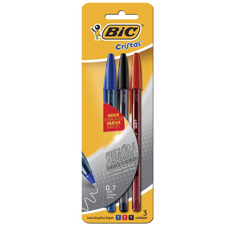 Caneta esferográfica Cristal Ul/Fina az/pr/verm 3und Bic