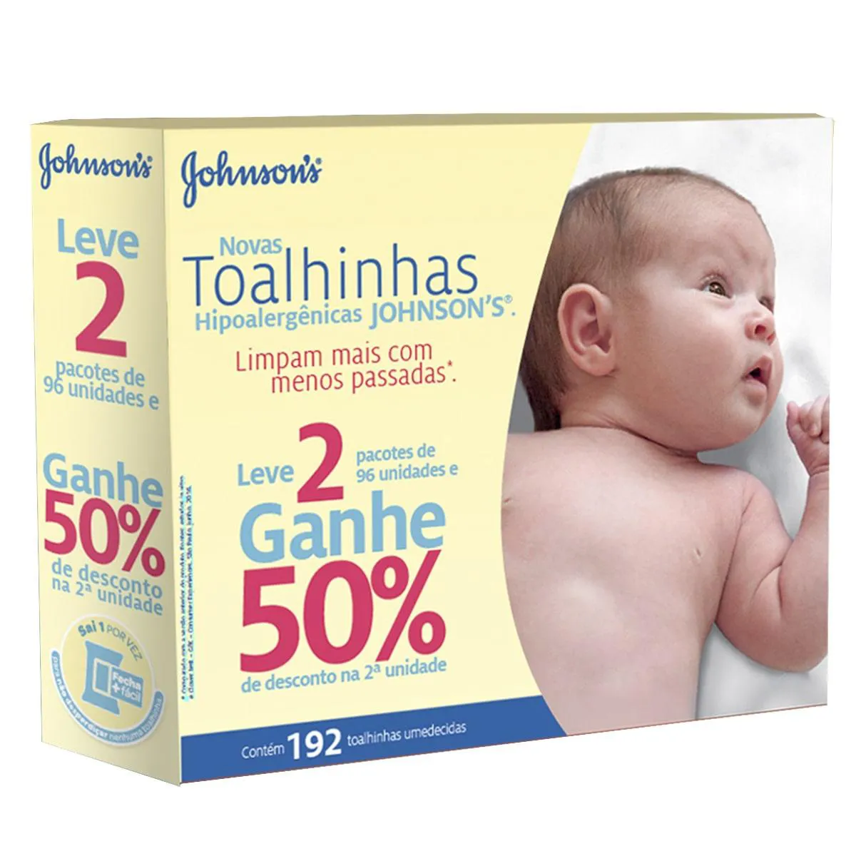 Kit Lenço Umedecido Johnson's Recém-Nascido com 2 pacotes de 96 unidades cada