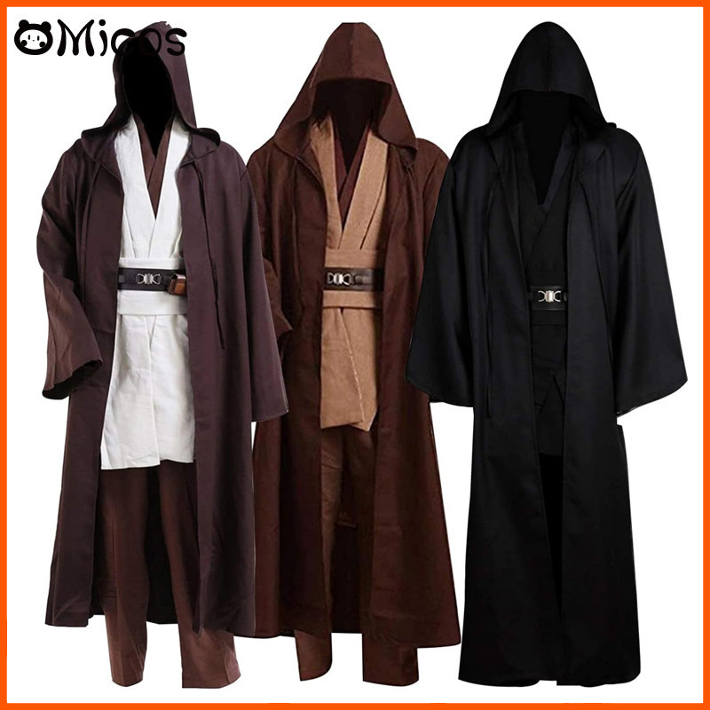 Roupa De Halloween Jedi De Cintura Amarrada Masculina Com Capuz Conjunto Completo Star Wars Obi Wan Kenobi Cosplay