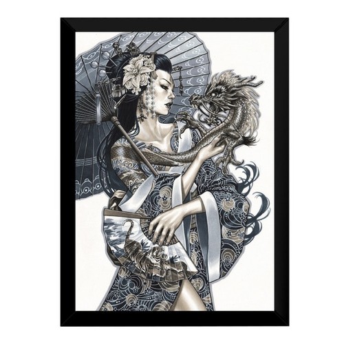 Quadro Gueisha Gueixa Arte Dragão Oriental Poster