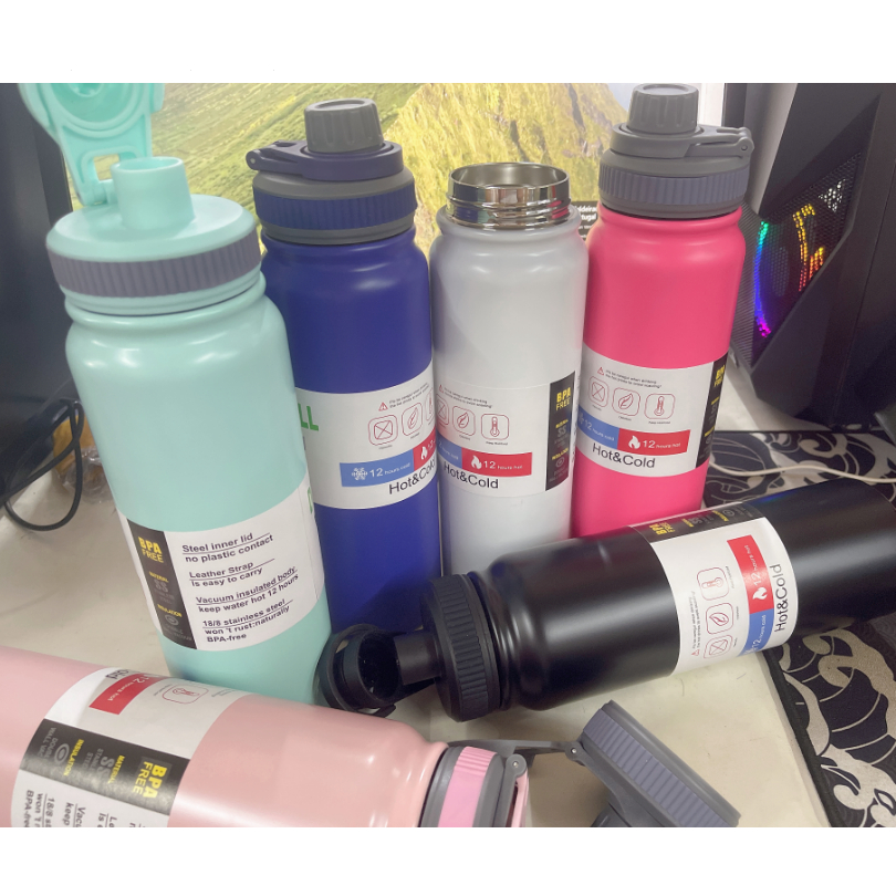Garrafa Térmica 6 Cores De Grande Capacidade Esportes Pote Dupla Camada Presente De Aço Inoxidável Termos Portáteis 1000ML