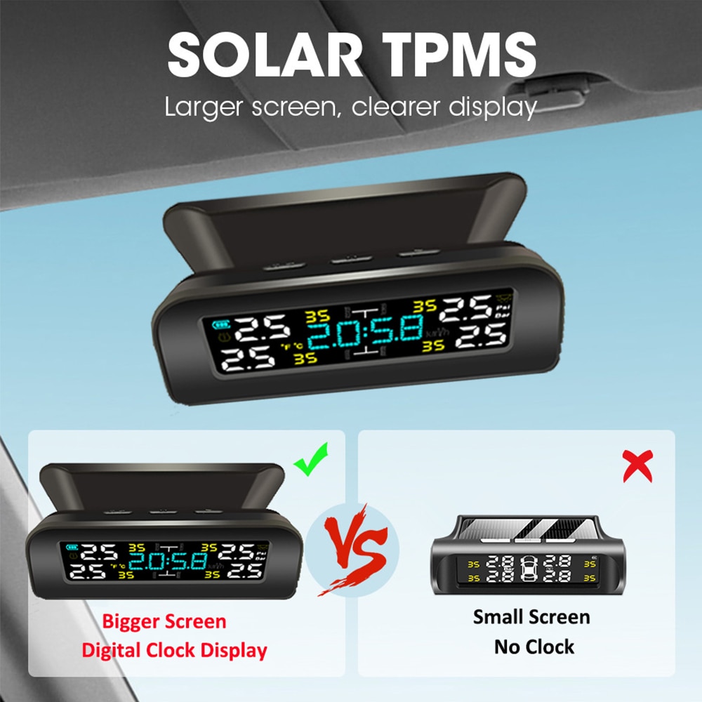 🔥🔥🔥【Ready Stock】 Tpms Solar Sem Fio Ipx7 24 Horas Resistência À Prova D 'Água Lcd Sistema De Monitoramento Da Pressão Dos Pneus Do Carro Sensores Externos 4 0-4bar