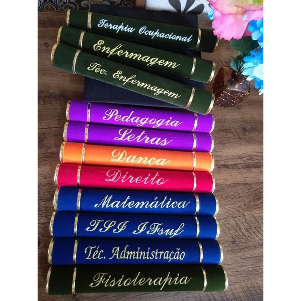Canudo de formatura/ diploma bordado símbolo e nome do curso.