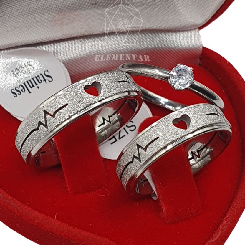Par de Aliança Namoro Compromisso Coração Batimentos 6mm + Solitário Aço inox 316L