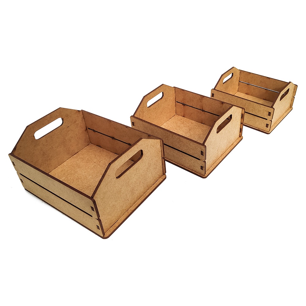Caixote De Feira MDF Cru P M G Presente Festa Caixa para Artesanato Cesta Em Madeira Organizador Montado