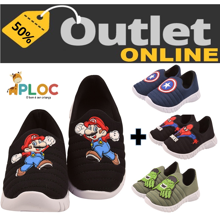 KIT OUTLET 2 PARES TÊNIS PERSONAGENS MEIA CALCE FACIL P51 PRETO SUPER MARIO + PERSONAGEM ADICIONAL A ESCOLHER