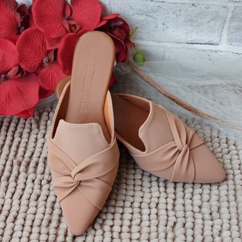 Muller Feminino Mule Sandália Rasteira Detalhe Nó Bico Quadrado