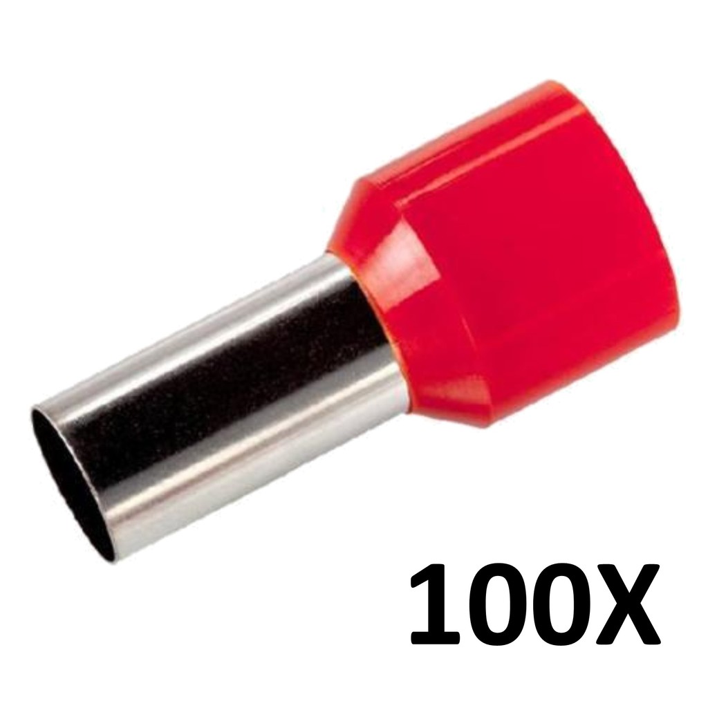 Terminal Elétrico Ilhós Tubular Duplo 2,5mm 100 Unidades