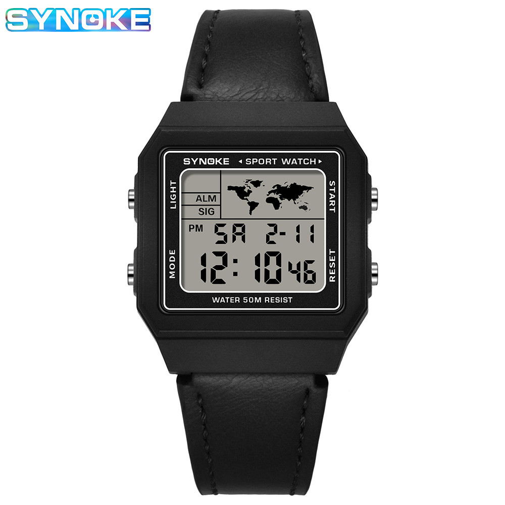 Sinoke Relógio Original Masculino De Luxo Casual De Couro Correia Pequeno Discagem À Prova D'água Digital Esportivo