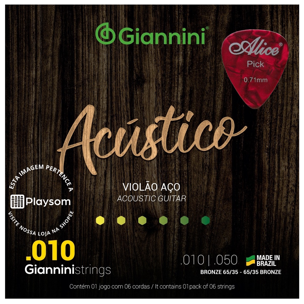 Encordoamento violão aço 010 Giannini Acústico Bronze 65/35 - Corda violão acustico 010