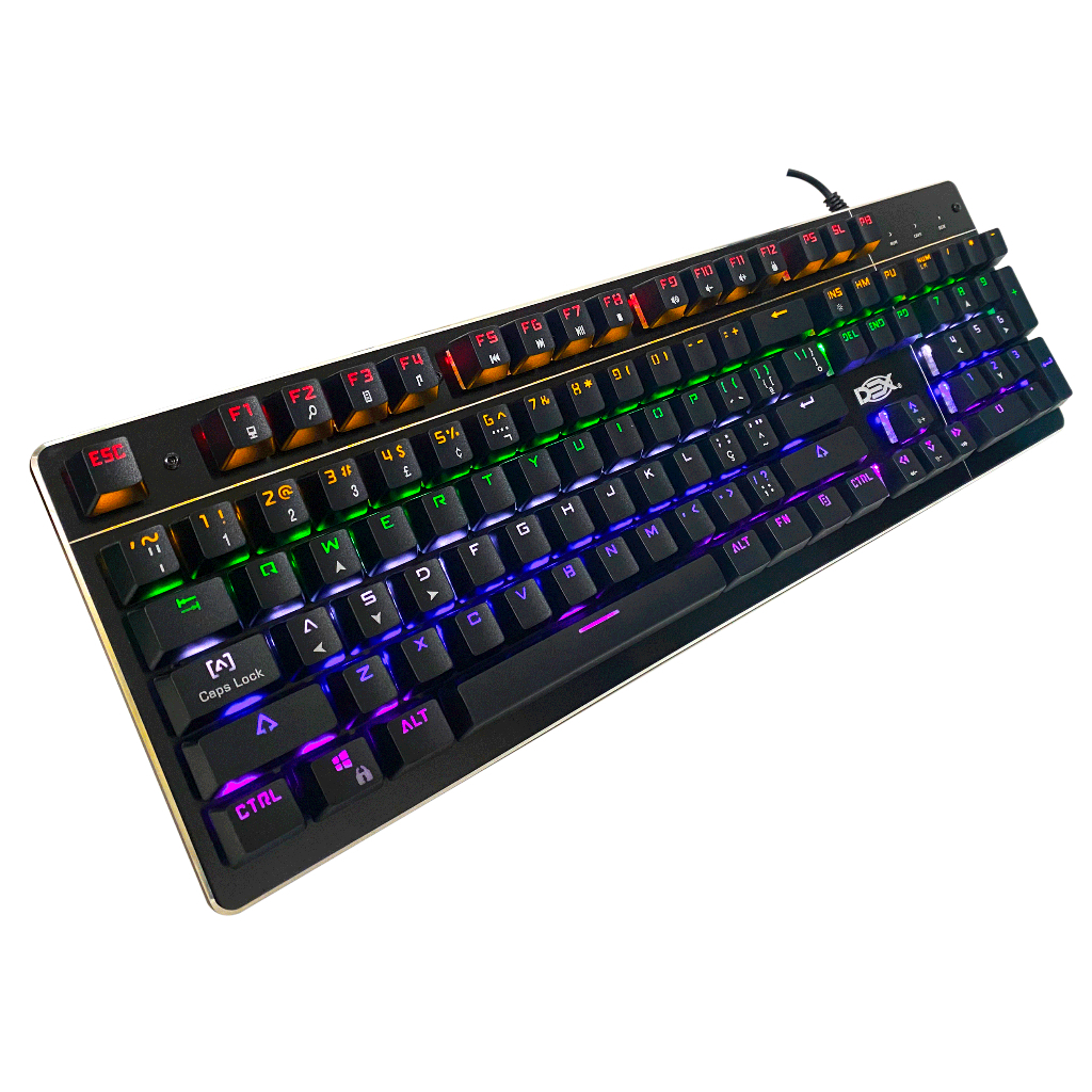 Teclado Mecânico Gamer Rgb 9 Funções De Led Switch Blue em metal