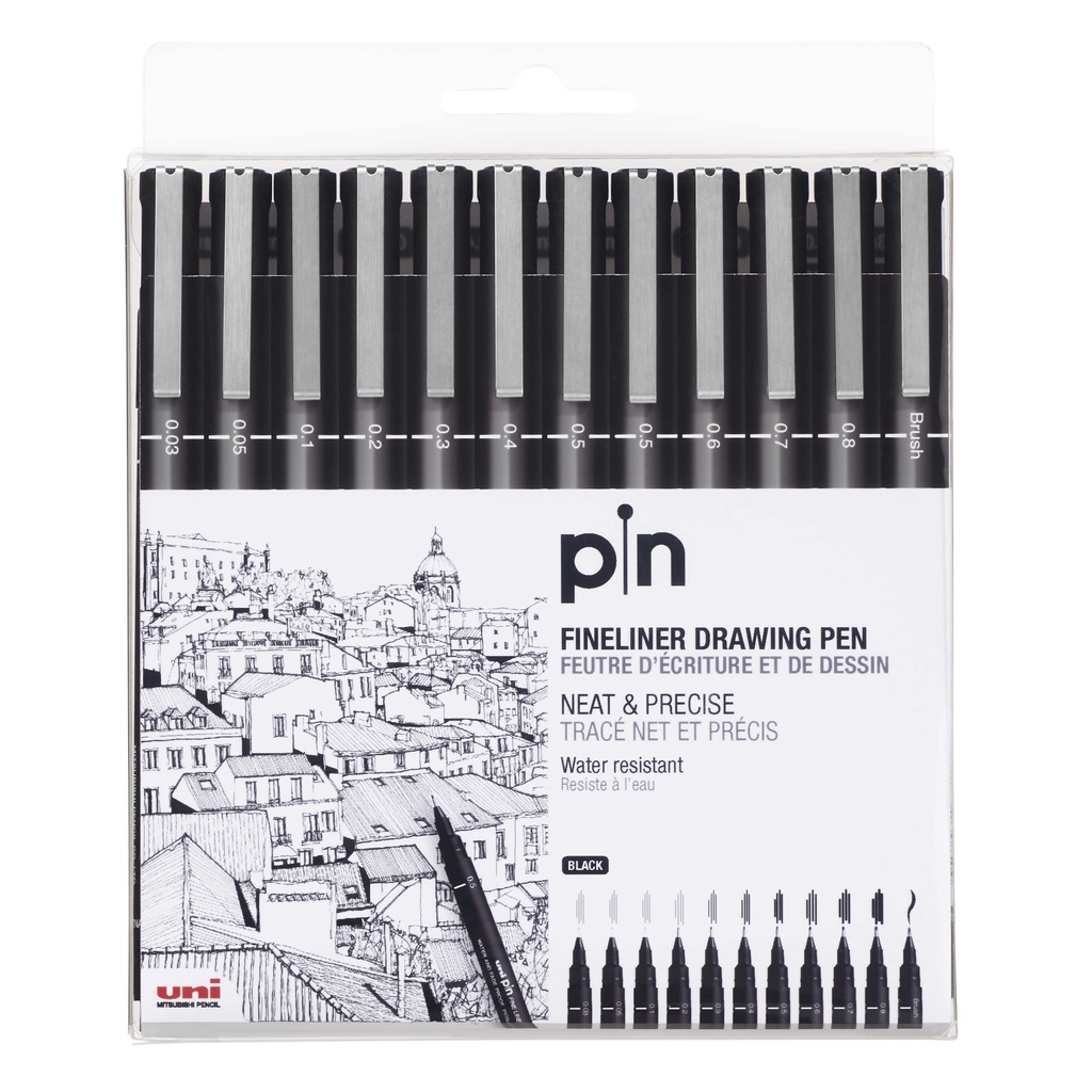 Caneta Uni Pin Nanquim Nankin Tecnica Fine Line Brush Ponta Fina Desenho Profissional