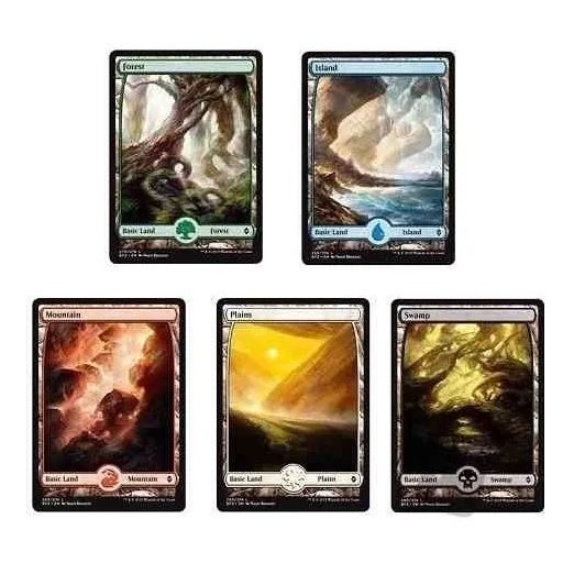 100 terrenos básicos (basic lands)/ mana de Magic the Gathering sendo 20 de cada cor (branco/azul/preto/verde/vermelho) + 10 tokens de magic tge gathering