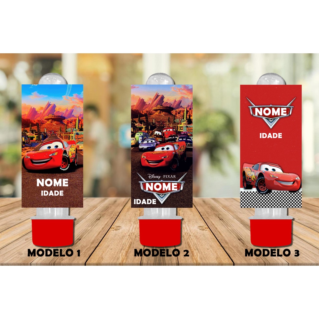 36 Adesivos Etiqueta para Tubete 8x4 cm Carros Personalizado com Nome e Idade com Recorte Especial