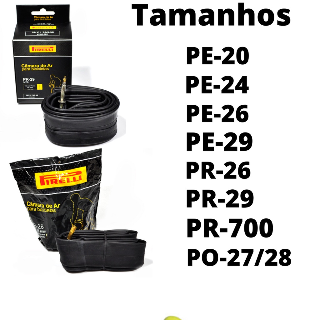 Câmara De Ar Bicicleta Aro 16 / 20 / 24 / 26 / 29 / 700 Pirelli Válvula Americana e Presta