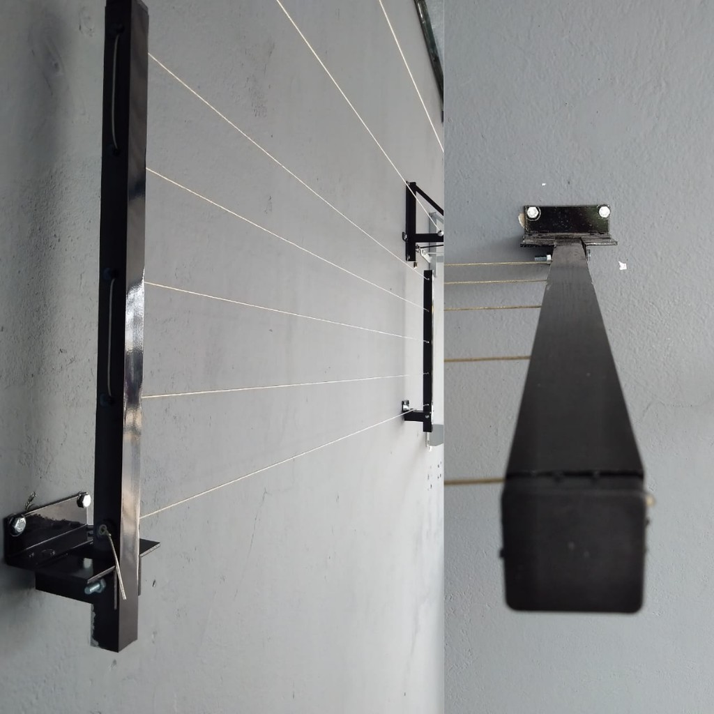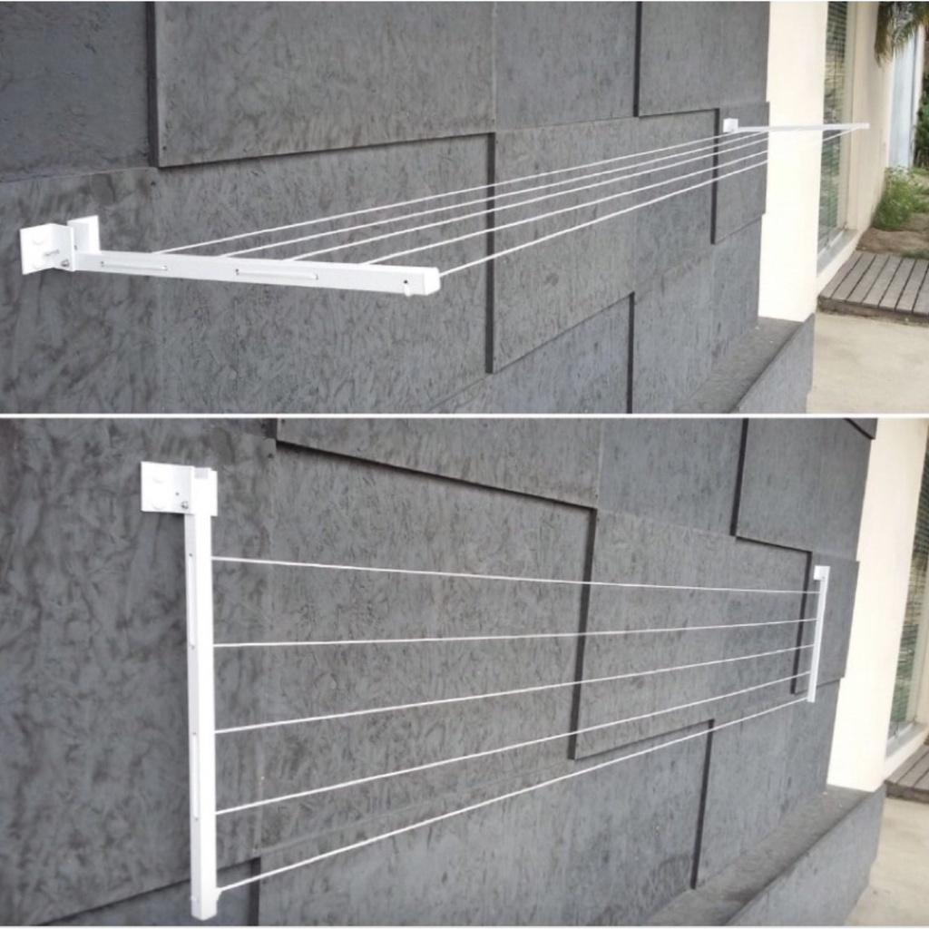 Varal em aço carbono Reforçado Retrátil De Parede + kit instalação com capacidade de até 60 Kg