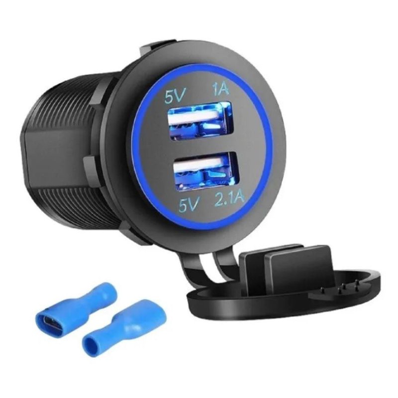 Tomada Carregador USB Veicular 3.1A (duas saída ) substitui o acendedor Azul .