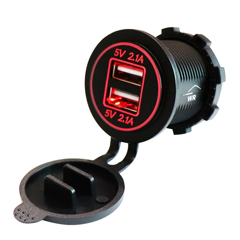 Tomada Carregador USB Veicular Vermelha 3.1A ( duas saídas ) substitui o acendedor.