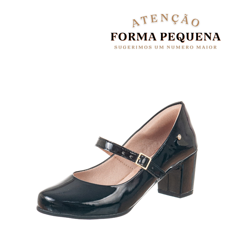 Sapato Scarpin Boneca Salto Baixo com Fivela Ajustavel e Confortavel Varias Cores