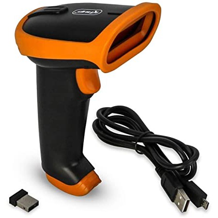 Leitor de Código de Barras Sem Fio a Laser Wireless USB Preto e Laranja 650nm Laser Knup - KP-1018
