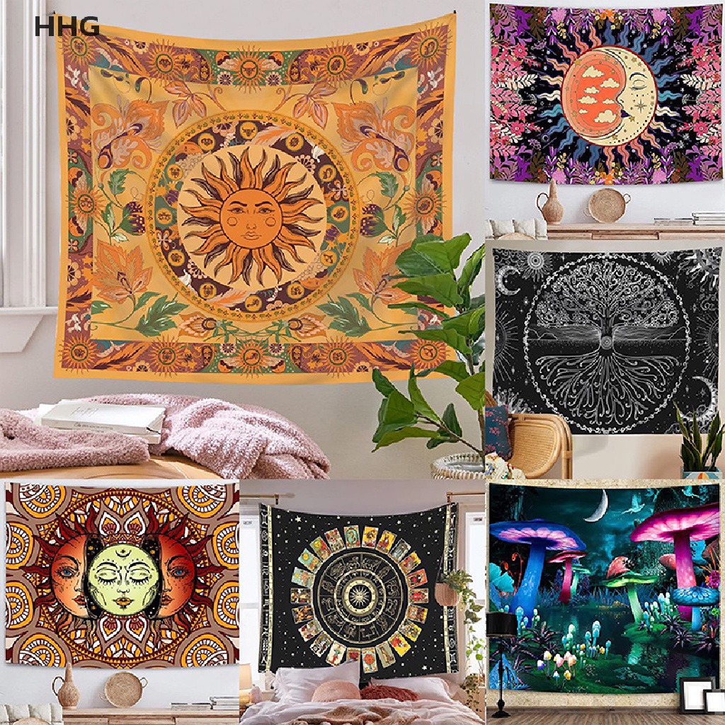 HHG Clássico Tapeçaria Lua De Sol Preto E Branco 3D Impressa Mandela Parede Estilo HL