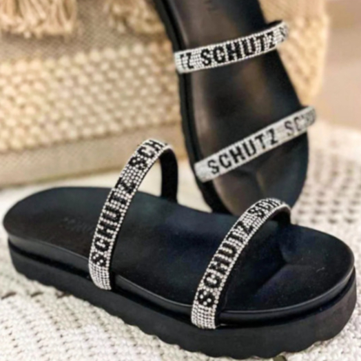 Sandália Papete Schutz Feminina Birken Chinelo Rasteirinha Brilho Strass Confortável