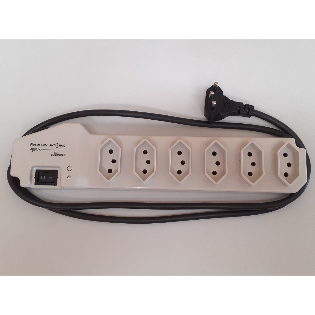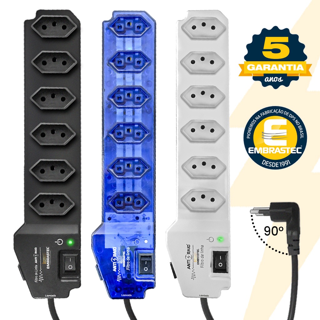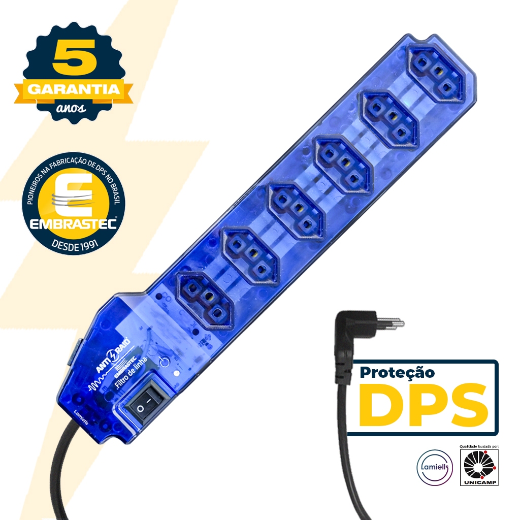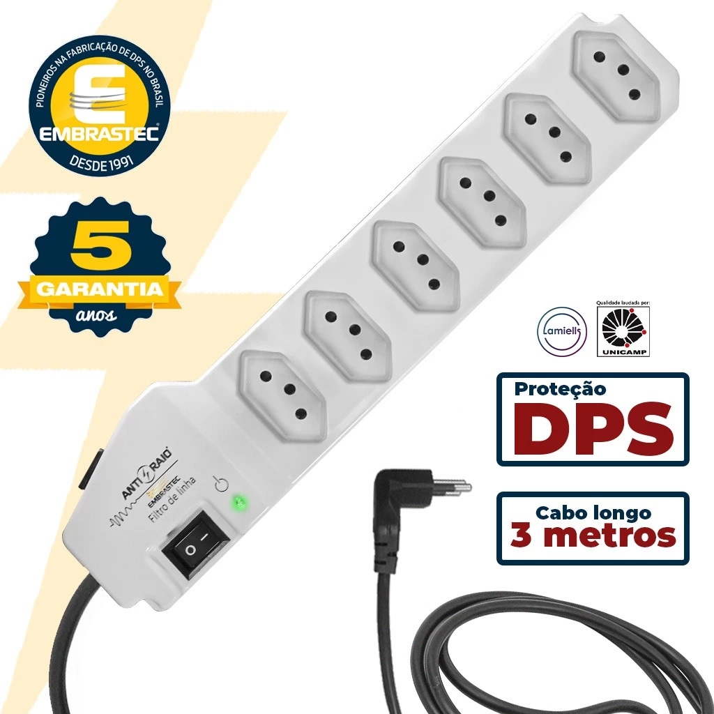 Filtro de Linha 6 Tomadas Embrastec Bivolt DPS Proteção Contra Surtos Régua de Tomadas Extensão
