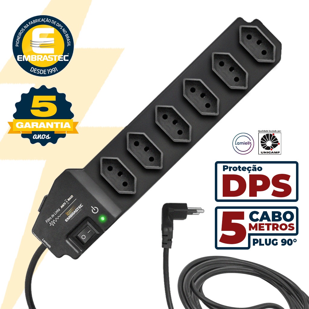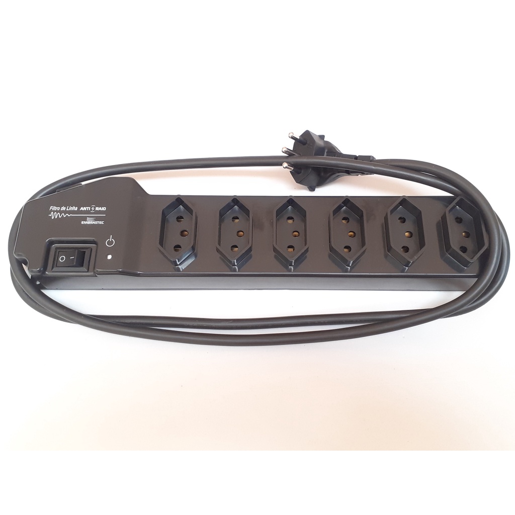 Filtro De Linha 6 Tomadas com DPS 7,5kA Preto Embrastec
