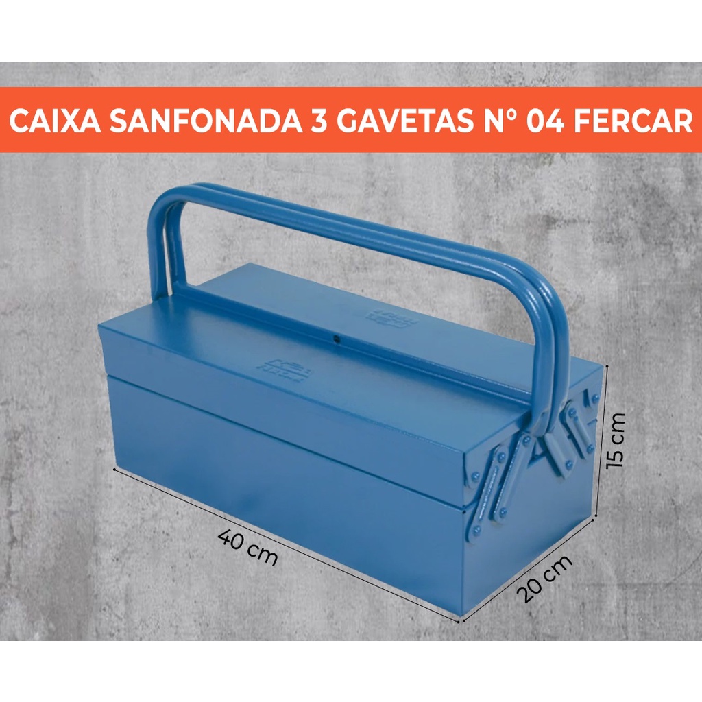 Caixa De Ferramentas Sanfonada 3 Gavetas Fercar 04 De Metal 40X20X17 Baú Organizadora Resistente Aço Azul