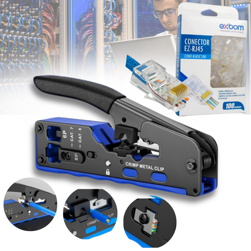 Kit Alicate De Crimpar Rj45 Ez Crimp De Passagem + 100 Conector Ez