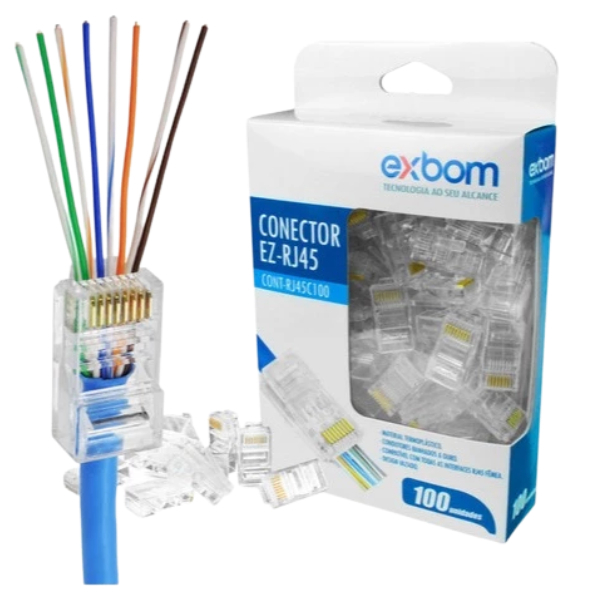 Kit 100 Conector Rj45 Utp Cat5e Banho De Ouro Cabo De Rede