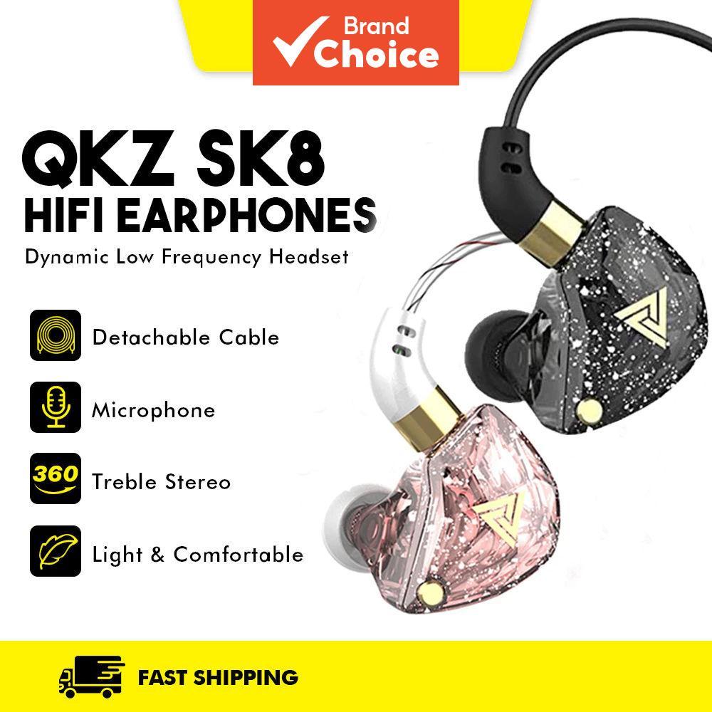 QKZ SK8 Fones de Ouvido com Fio 3,5mm com Microfone, Fone Dinâmico, Graves HI-FI, Monitor Intra-Auricular, Esporte