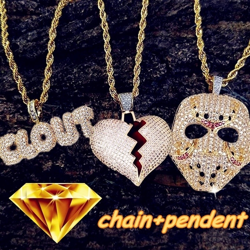 Masculino Luxuoso Coração Ouro Prata Rosa Joia Clássica Máscara Legal Corrente Pingente Hip Hop Colar