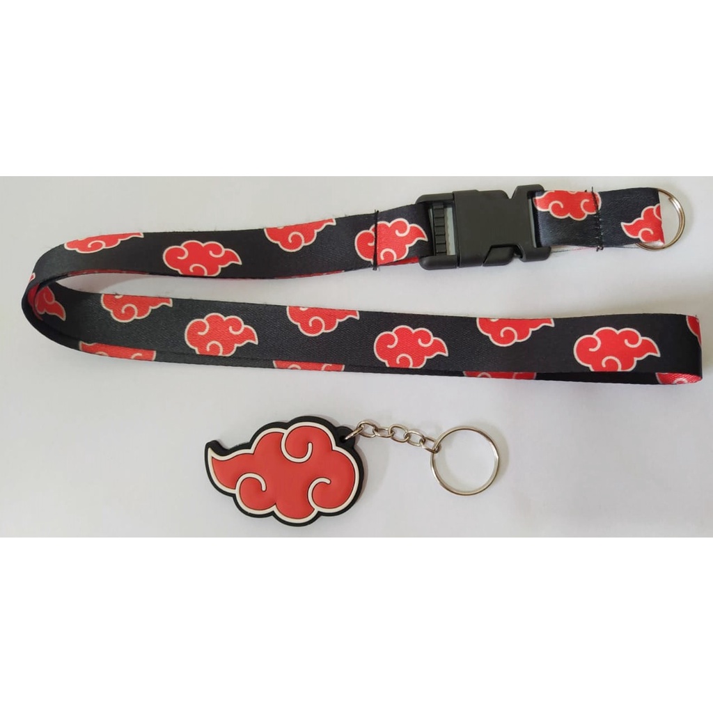 Kit Chaveiro Cordão Moto Fecho Engate Rápido Akatsuki + Chaveiro Emborrachado Alto Relevo Akatsuki Nuvem