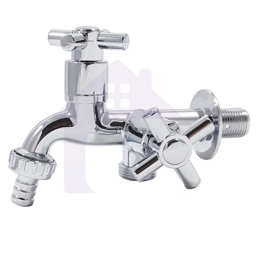 Torneira Cromada para Maquina de Lavar e Tanque 2 Saídas Abs Lavanderia 1/4v