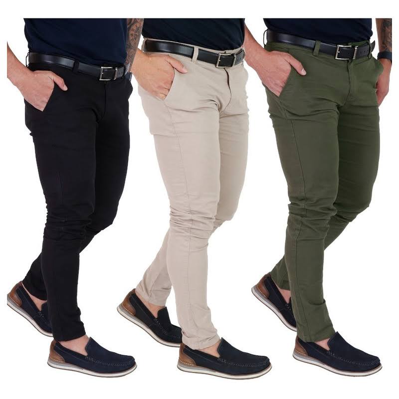 Calça De Sarja Reta Skinny Slim Masculina Com Lycra - DIVERSAS CORES