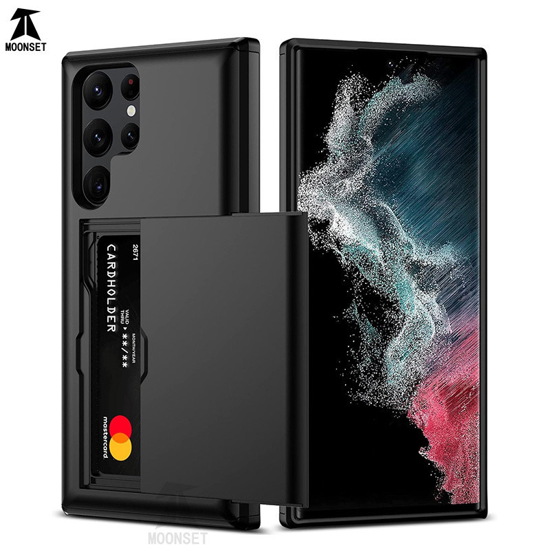 Para Samsung Galaxy S22 Ultra/S22 Plus Porta-Carteira Deslizante De Bolso Com Dupla Camada De Proteção Contra Arranhões TPU De Capa Dura