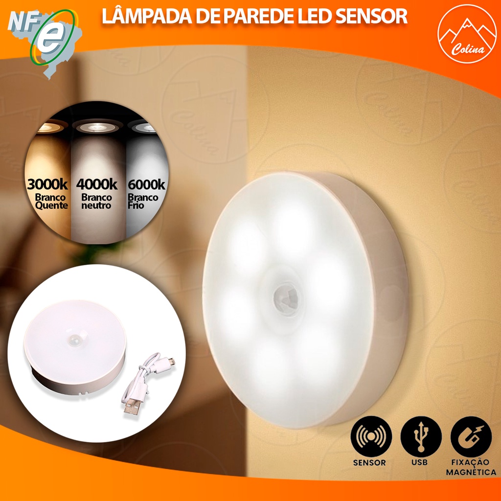 Lâmpada Led Parede Sensor de Movimento Fixação Magnética