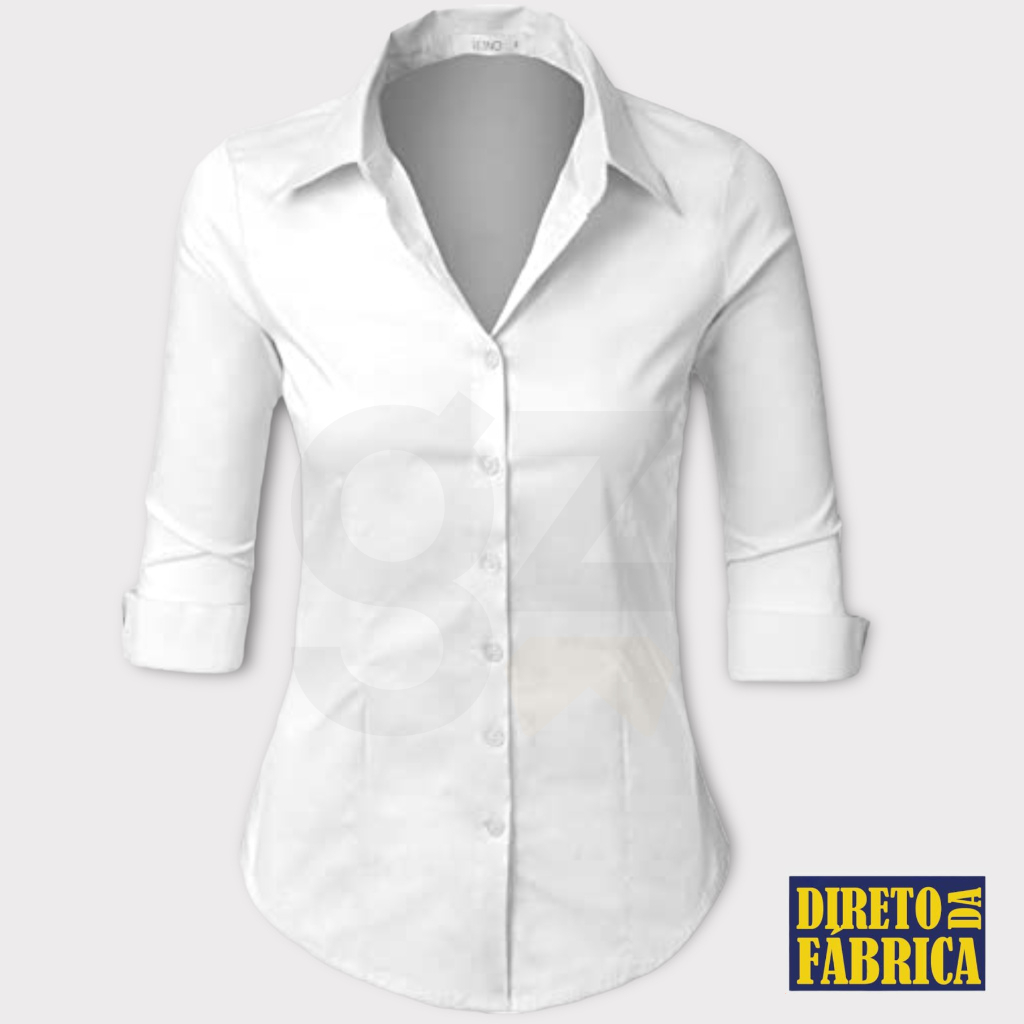 camisete branca camisa social feminina manga longa Gabardine passa fácil direto da fábrica