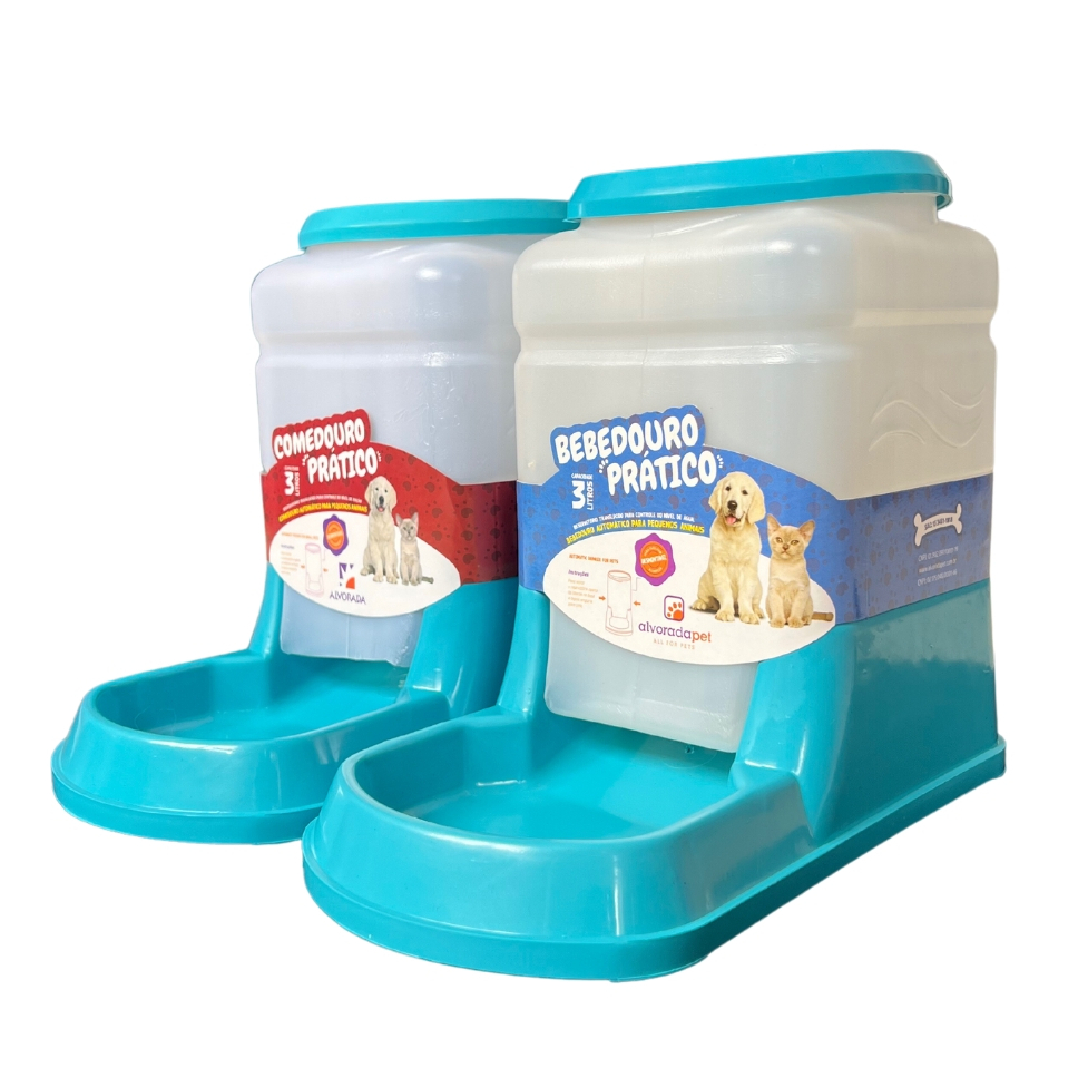 Kit Comedouro e Bebedouro para Cães e Gatos Automático Refil 3 Litros - DogCompany