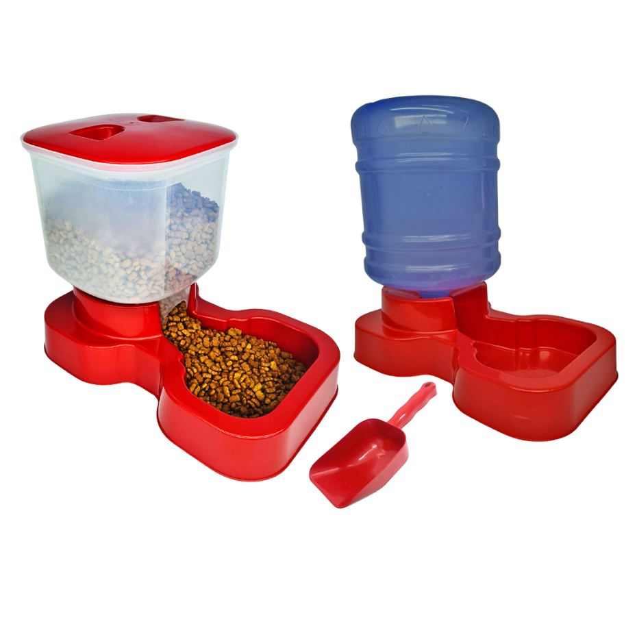 Kit Comedouro e Bebedouro Automático para Cães e Gatos com Bolinha Cravo Pet