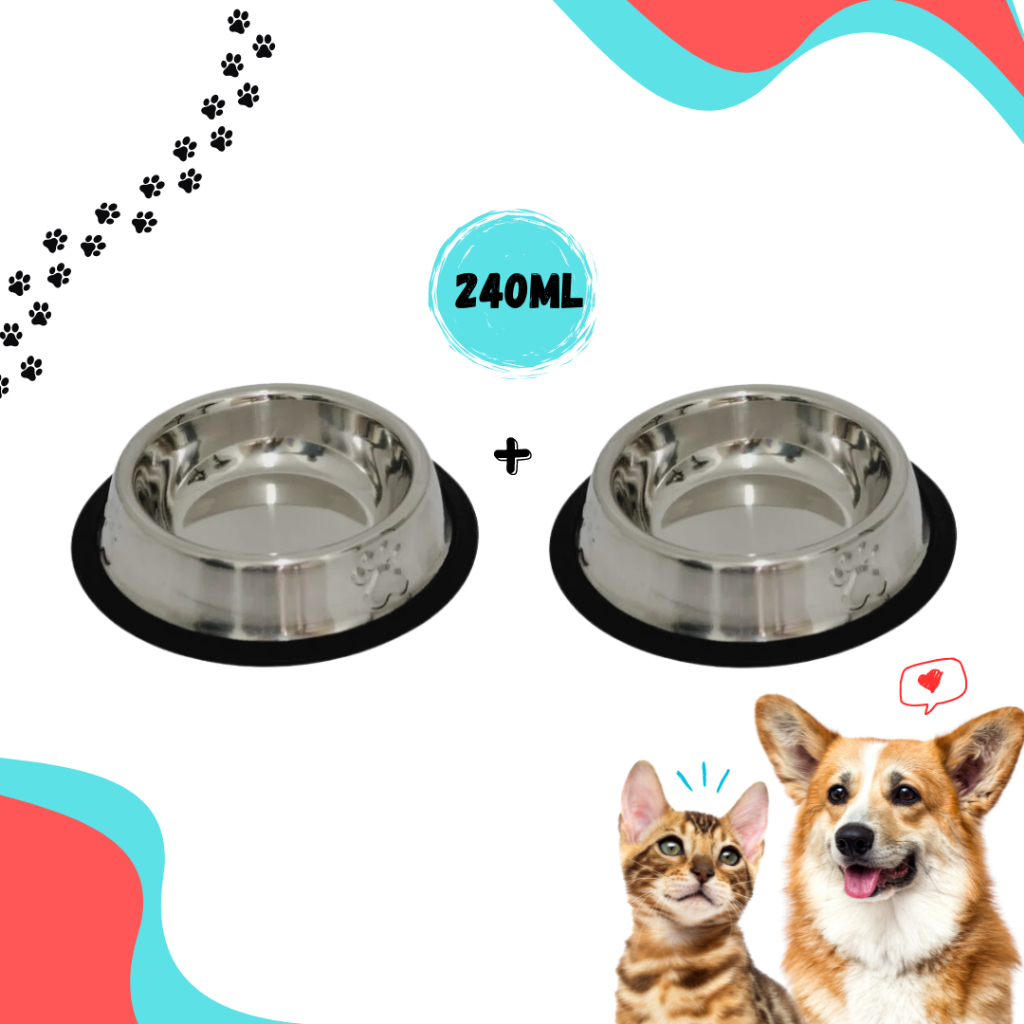kit Comedouro e Bebedouro inox Cachorro Para Cães E Gatos - antiderrapante - 240ml