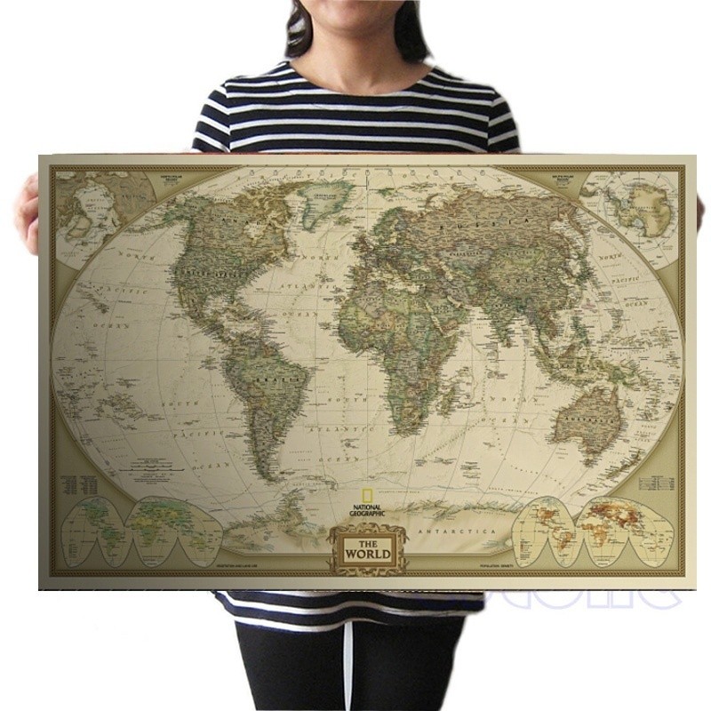 Dlkklb Grande Lua Terra Mapa Do Mundo De Papel Retro Do Vintage Cartaz De Parede Gráfico Decoração De Casa Adesivo De Parede Parede 71 cm X 44.cm
